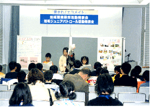 地域環境ジュニアパトロール活動は、ごみや水・空気、身の回りの自然や生き物など、身近な環境をテーマとした調査を行う活動で、19団体が参加。