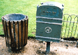 形は丸または四角であるが、黒地に金線が多く、おしゃれな感じがした。ケンジントンガーデンには、なんと犬の糞用のごみ箱まであった。