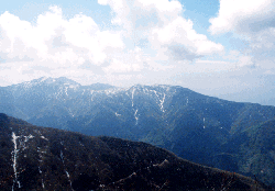 砂利道が多いこともあって下りの方がきつく感じ、ひざに来る。さらに、途中、残雪も多く余計に足元が危うい。