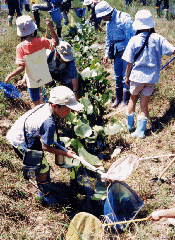 「自然の生き物いっぱいの水辺」に子どもたちを連れて行くと、何も解説しなくとも、子どもたち自らが生き物を捕まえ、感動と発見をし、質問をしてくる「自然観察会」になってしまう。これは嬉しいことだが、人工的な公園や、生き物のいない見慣れた田んぼの様子とあまりにも違いすぎるからではないだろうか。その様子を見ていると、生き物たちを捕まえるときの真剣勝負・知恵比べ、自分に起こる危険を予測する、1人でできる力の見極めというような、子どもたち本来の能力は、自然の中で遊ぶことによって引き出されるのではないだろうかと感じる。