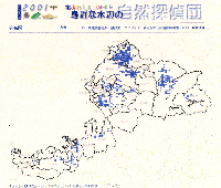 昨年度は54団体(個人参加者含む)、532名が参加し、見つけた生き物の種類は143種であった。この結果は自然保護センターのホームページで見ることが出来る(図)。ホームページ上では、単独種の分布図を表示するだけでなく、任意の2〜3種の分布図を重ね合わせることによって、同様の分布傾向の種を探したり、逆に全く違う分布をする種を探すことも可能である。また、背景として白地図(市町村名入り)をはじめ、標高図、水系図を選択できるため、生き物と自然環境、標高、川との関係について分析できるようにもなっている。団員の人も、団員以外の人も、いろいろな人が身近な水辺の生き物の現状を知り、身近な自然のあり方について考えるきっかけになれば、と考えている。