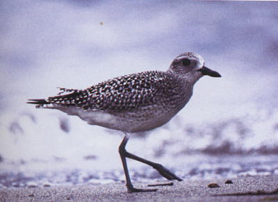 夏羽は顔から胸が黒くなるのはムナグロと同じだが,背中は白黒で浜辺で見られる.