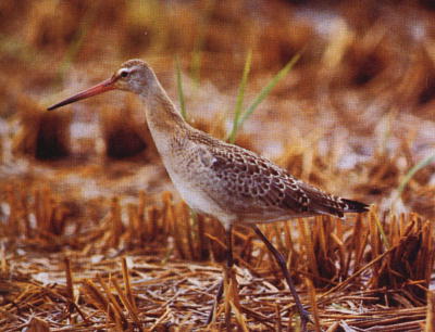 まっすぐで長い嘴と尾の先端が黒くなるのが特徴だ.