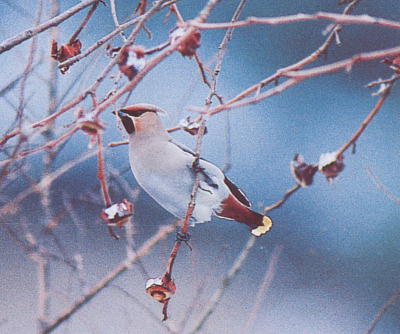 冠羽があり尾羽の先端が黄色.レンジャク(連雀)の名の如く群れでいることが多い.