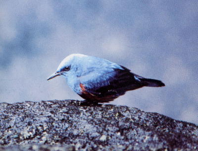 オスは青い背に赤茶の胸が特徴で海岸べりの岩や護岸,人家の屋根等でよく見かける.