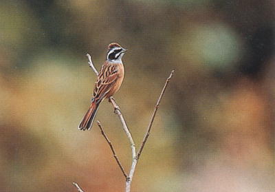 白い眉線と頬線,赤茶褐色の腹が目印で,地鳴きは「チチッ,チツツ」と2〜3声で鳴く.