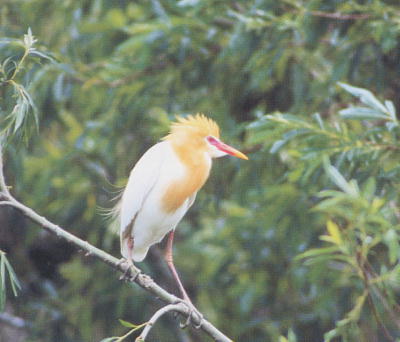 夏羽は橙色が目立ち,繁殖期は嘴も赤くなる.秋には白色になり他種と区別しにくい.