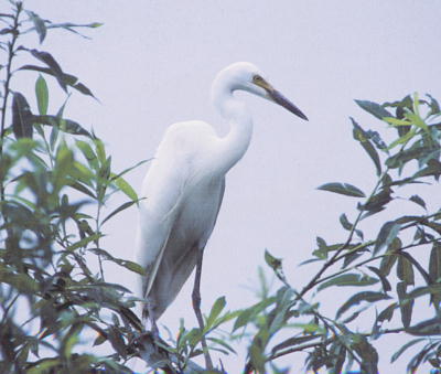 繁殖期には胸や背に飾羽がでる.足の黒,長い嘴,長い首等がシラサギ類での相違点だ.