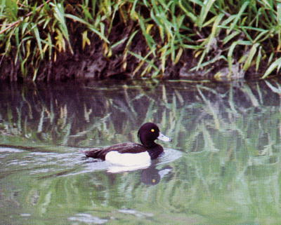 金色の目と冠羽が目印でオスの脇腹は白い.