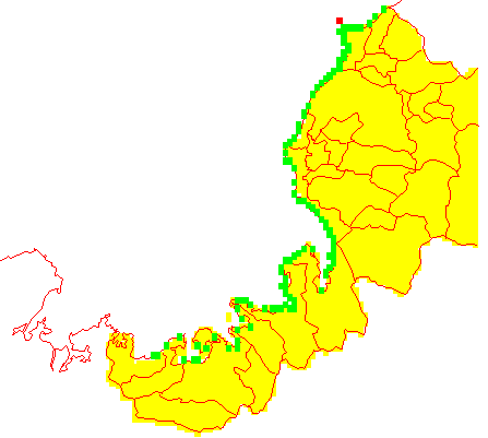 美浜町ほぼ全域、仏谷〜阿納尻、遊子、塩坂峠〜食見、神子、松原海岸、